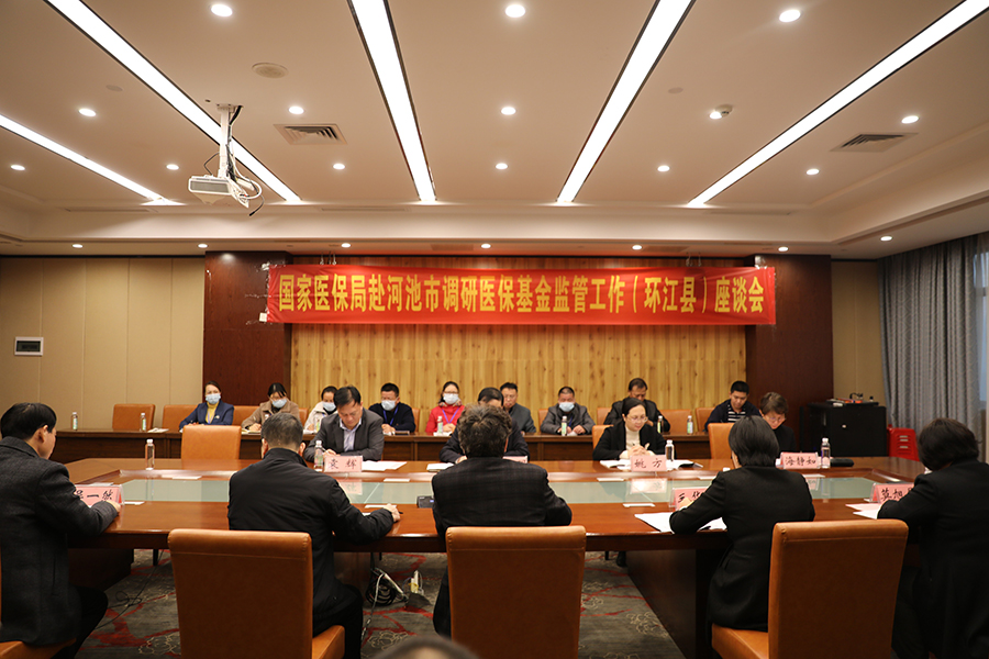 2021年12月2日,国家医保局基金监管司副司长段政明率基金监管调研组到环江县调研指导医保基金监管工作。自治区医保局副局长姚方、河池市政协副主席韦祖林及河池市医保局局长杨龙文等一行陪同调研,环江县毛华慧县长出席调研座谈会,环江县政协副主席莫旭展全程陪同调研。