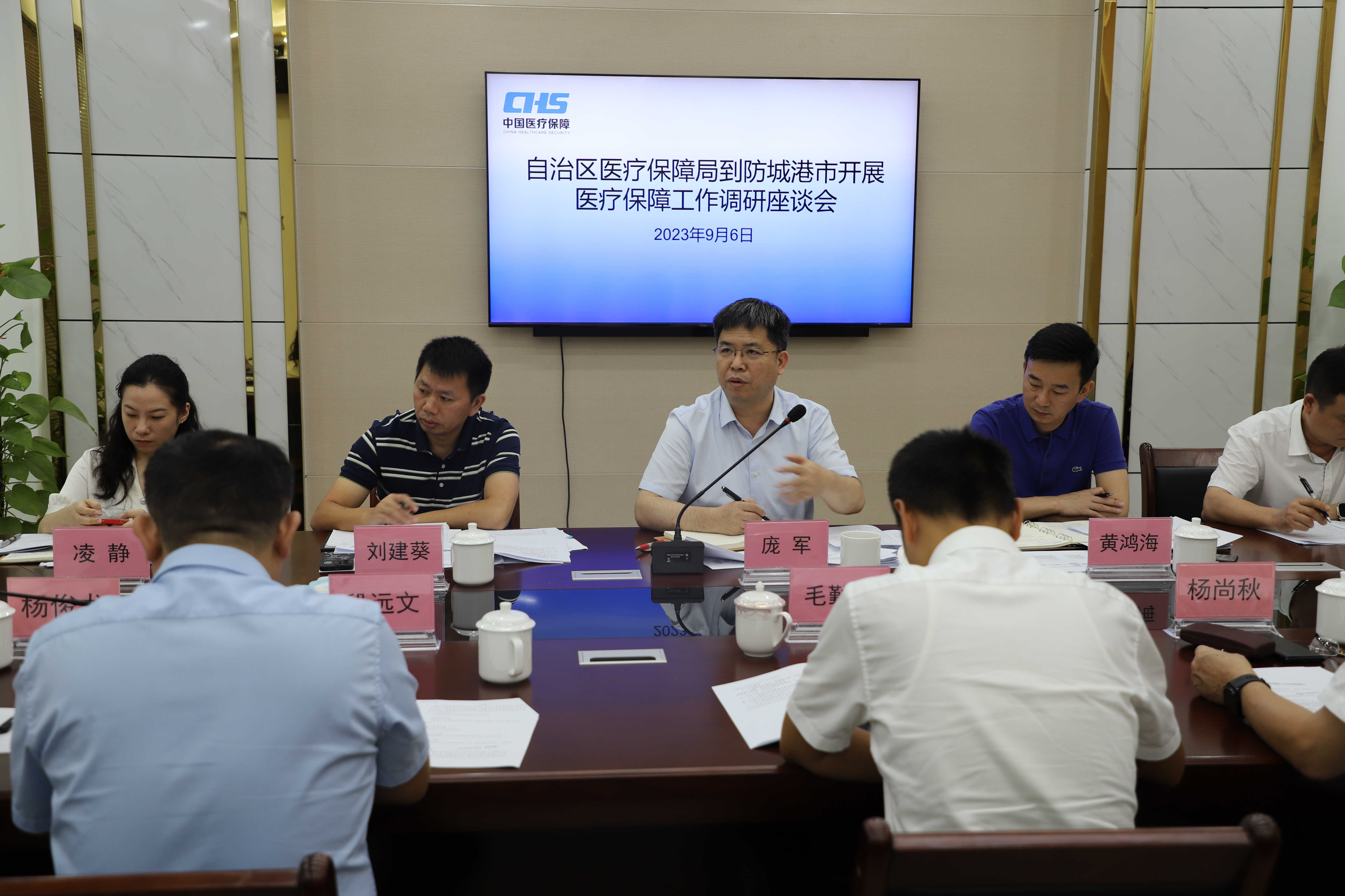 9月5日-6日,自治区医疗保障局党组书记、局长庞军一行到防城港市调研2024年度城乡居民基本医疗保险费集中缴费、防范化解因病致贫返贫风险监测、医疗保障经办服务能力提升“十百千万工程”、医药领域腐败问题集中整治等医疗保障重点工作。防城港市人民政府副市长毛勤晶、副秘书长段远文,市医保局党组书记、局长杨尚秋等陪同调研。