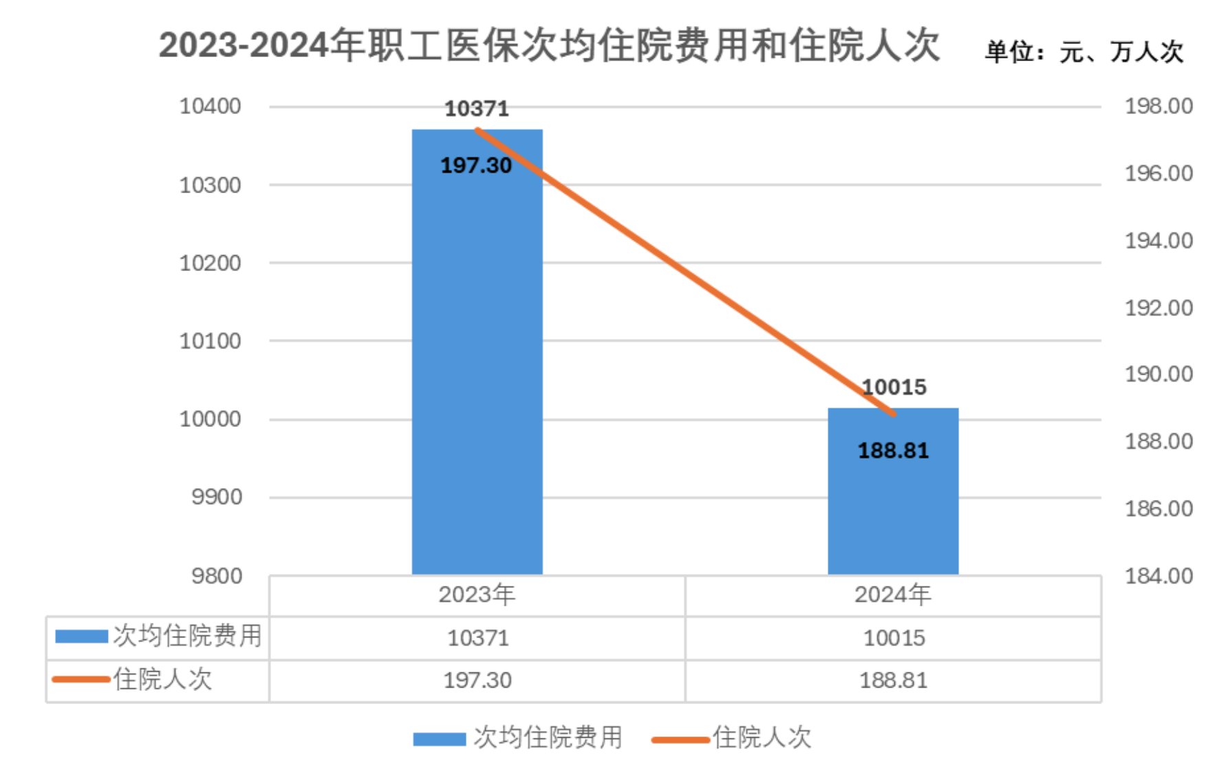 3.待遇享受。2024年职工医保参保人员待遇享受人次为10411.36万人次,比上年增长3%,其中普通门(急)诊3071.96万人次,门诊慢特病590.63万人次,住院188.81万人次,享受药店购药6559.95万人次。