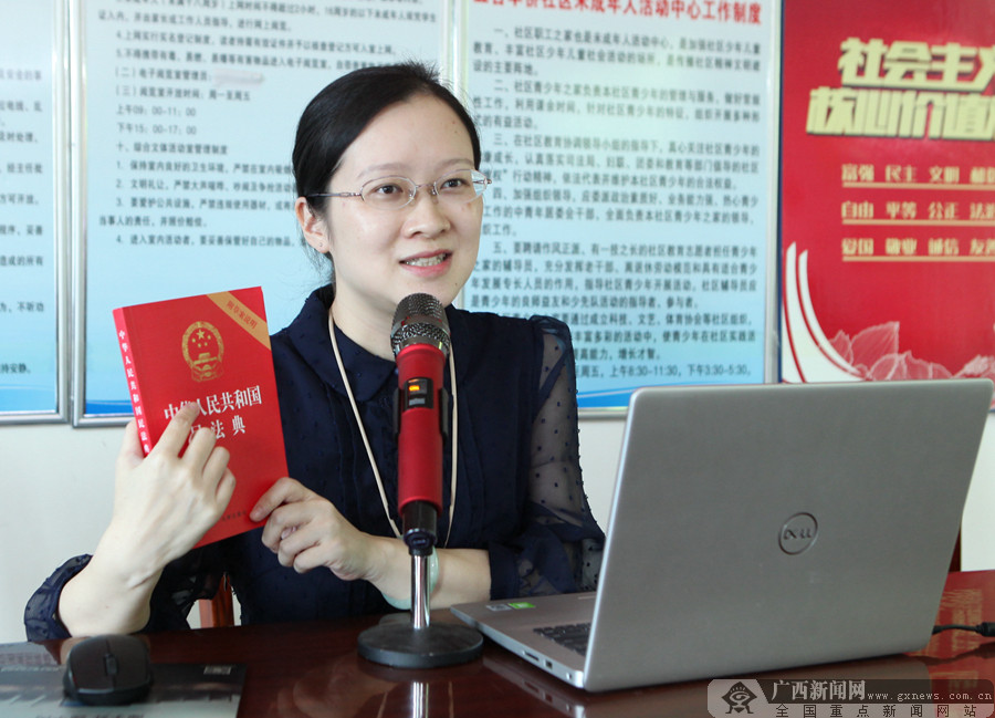邕宁区人民法院民事审判庭法官助理伍茵茵在五合华侨社区讲授民法典等相关法律知识。通讯员 黄莉艺 供图