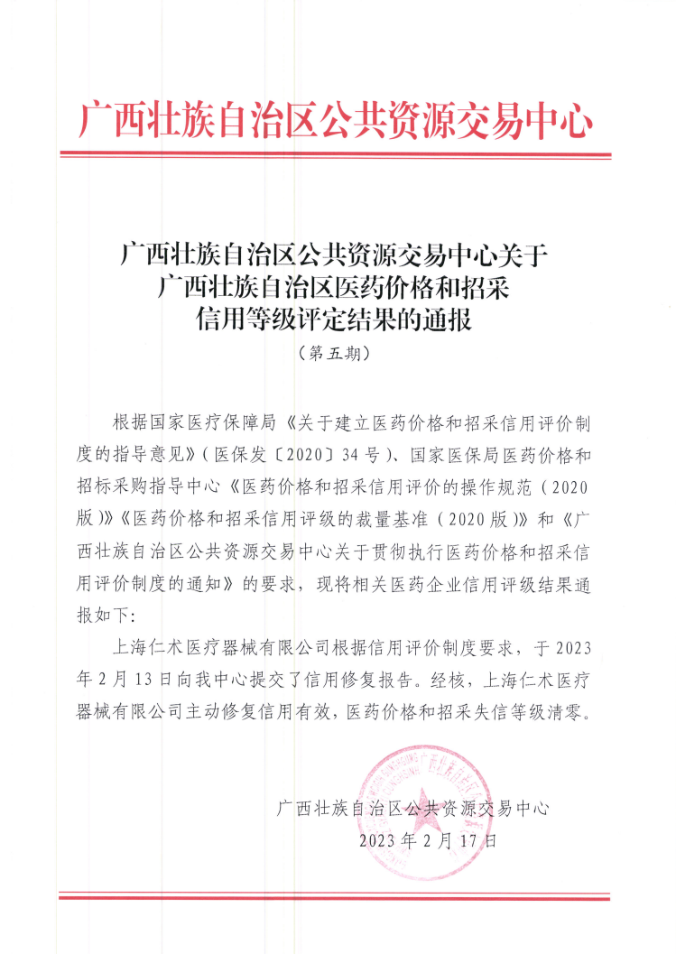 广西公共资源交易中心医药价格和招采信用评价历史通知