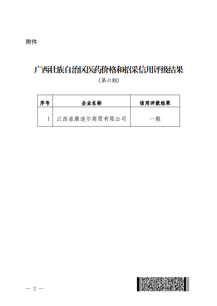 【信用评价】关于公布广西壮族自治区医药价格和招采信用评级结果的通知(第六期)