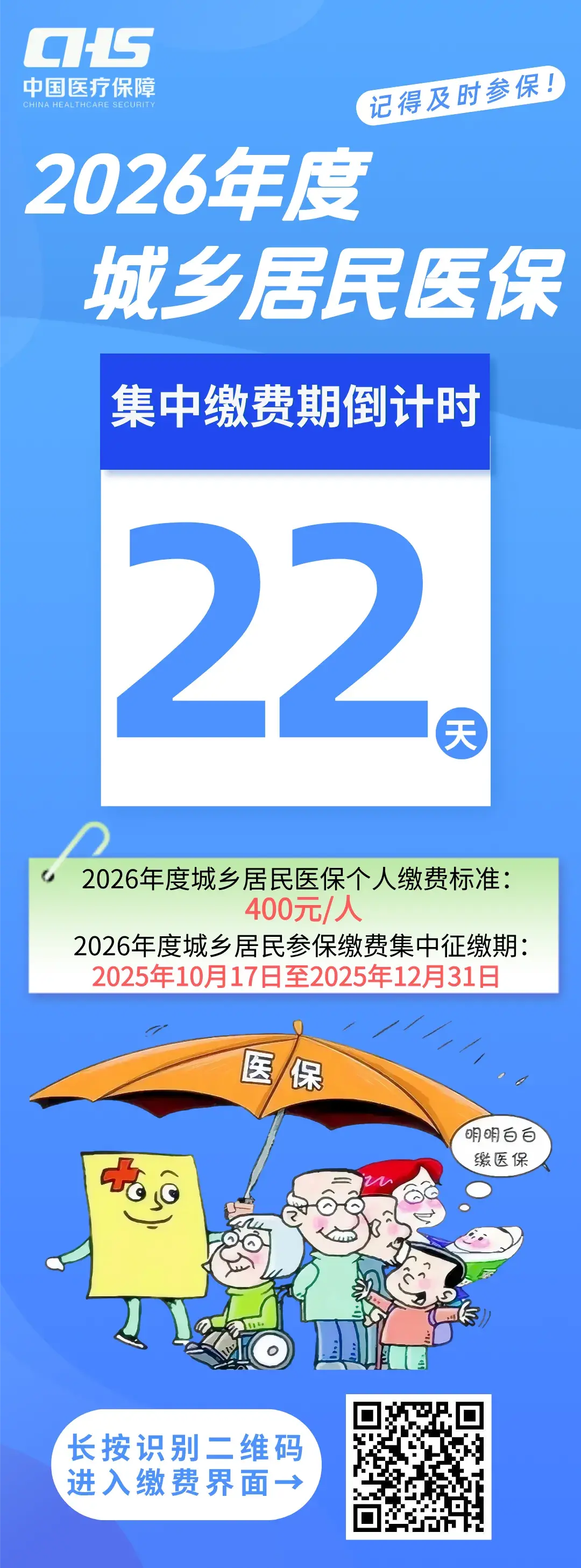 注意啦!2026年度城乡居民医保集中缴费期倒计时22天!错过将有待遇等待期